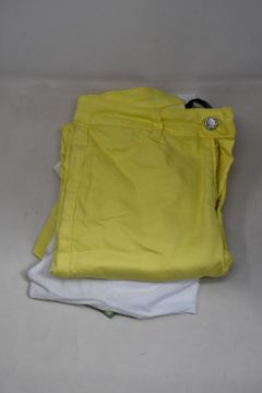 A pair of women's as new Berna trousers in yellow (TG 44) together with a Liviana Conti top (M).