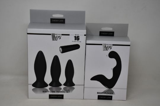 Five boxed as new Dream Toys Booty Pleasers Cheeky Love, five boxed as new Dream Toys Booty Cone Training Sets Cheeky Love (Adult Toys over 18s only).