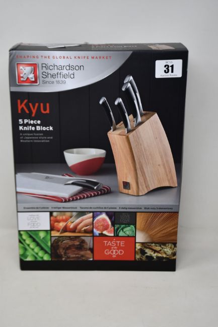 A boxed as new Richardson Sheffield Kyu 5-piece knife block set (Over 18s only).