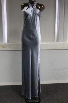 An as new Galvan London Eve heavy silk dress in silver blue (UK 14).