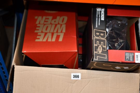 Three Bell - Crest and three Bell - Tracker bicycle helmets, all Universal Adult 54-61cm in grey, red and black, all as new.