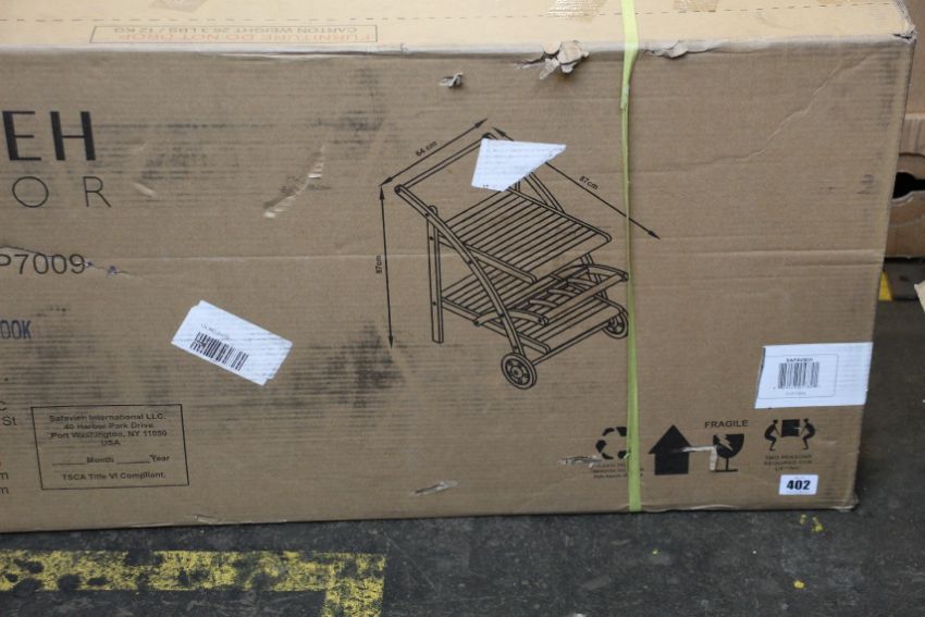 A Safavieh Malibu Outdoor Wooden Tea Cart.