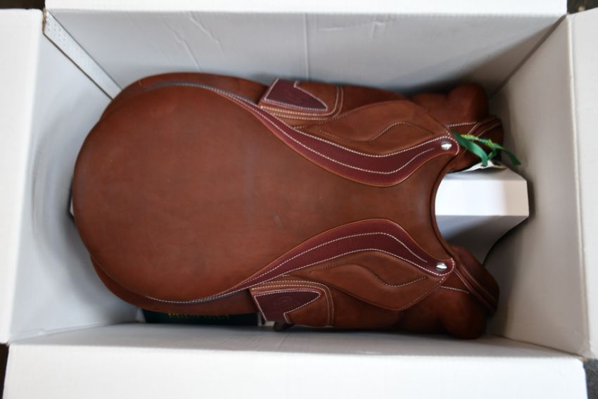 An as new Devoucoux Chiberta Lab Saddle in Havana along with cover, bridle, stirrup leathers, leather balsam and soap (D3D Technology, 003 2A, 2PB, Note: NNM discreet inscription).