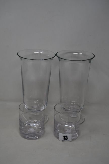 Two Tiffany & Co classic crystal vases and two Tiffany & Co lead crystal votives.
