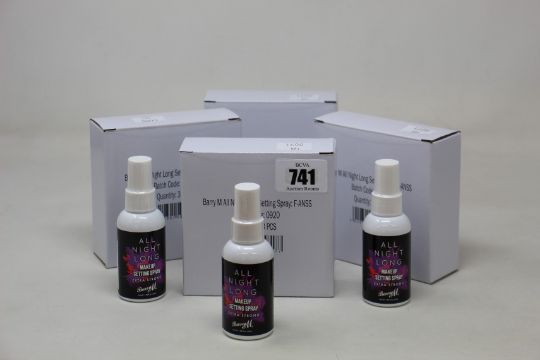 Twenty four boxes of three Barry M All Night Long setting sprays (50ml per bottle).
