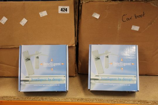 Thirty boxed as new intelligent hardware opal lever on rose door handles.