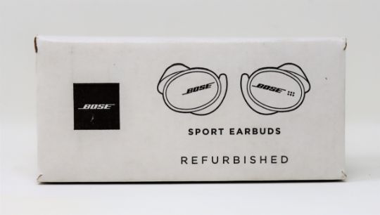 A refurbished pair of Bose Sport Earbuds with Charging Case in Glacier White (Box sealed).
