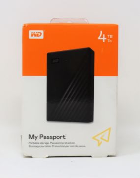 A boxed as new WD My Passport 4TB Portable Hard Drive (Box sealed).