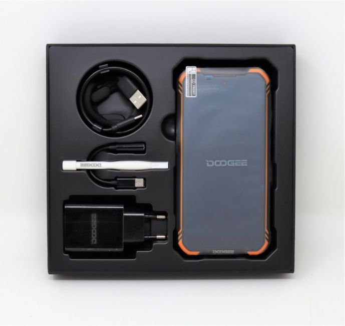 A boxed as new Doogee S58 Pro 64GB Rugged Smartphone in Fire Orange (Box opened, 2-pin plug and USB cable included).