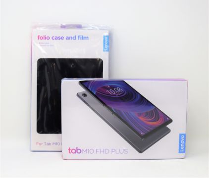 A boxed as new Lenovo Tab M10 Plus 10.3" FHD 128GB Tablet in Iron Grey and a boxed as new Folio Case in Black (Boxes sealed).