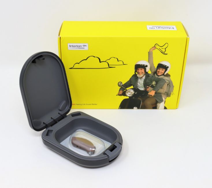 Two boxed as new Interton Ready 2 RD270-DW Wireless Hearing Aids in Brown (Indiviually boxed, storage cases included. Czech language manuals included).