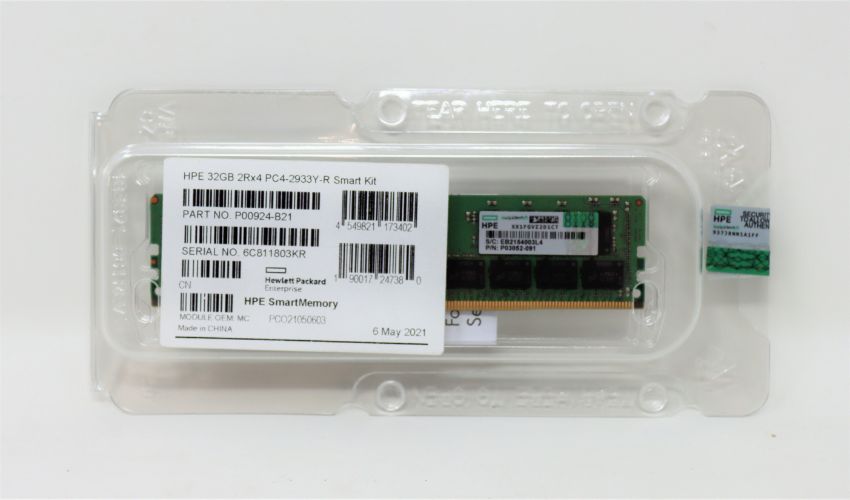 An as new Hewlett Packard Enterprise HPE 32GB 2Rx4 PC4-2933Y-R Smart Kit (P/N: P00924-B21) (Packaging sealed).