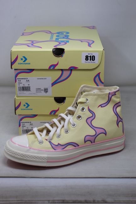Two pairs of as new Golf Le Fleur x Converse Chuck 70 Yellow Flame sneakers (UK 7.5).