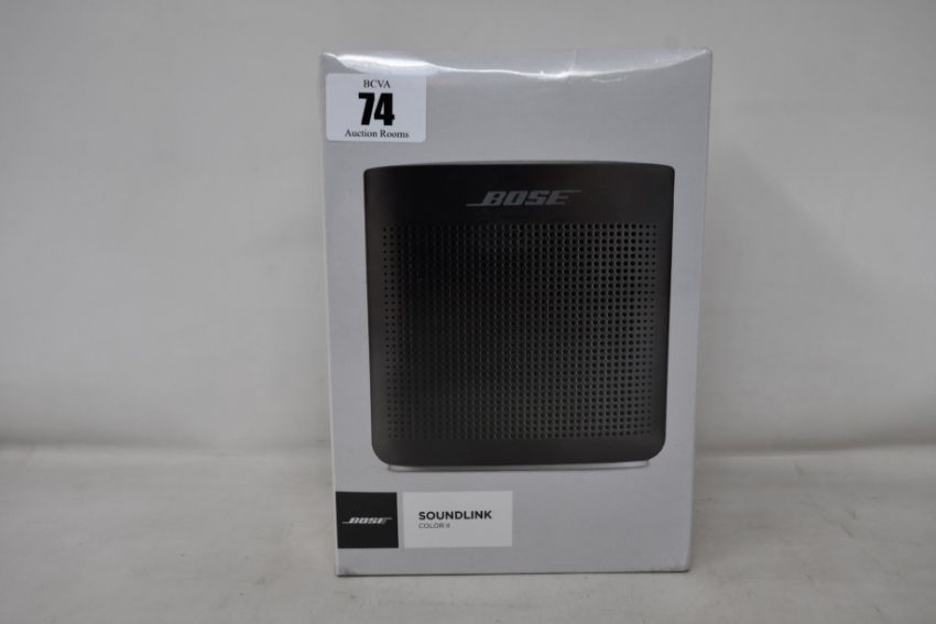 A boxed as new soft black 5v Bose Soundlink Colour ll speaker. (Factory sealed).