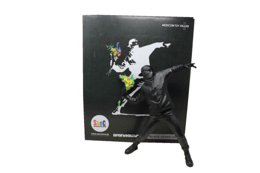 A Medicom Toy - Banksy Brandalism Flower Bomber Figure - Black Gesso Version (Slight damage to stalk of one of the flowers).