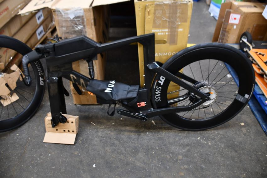 A pre-owned Canyon Speedmax CF 8 disc Di2 Fahrrad 2021 stealth, Frame Size: M, Stem Length: 80mm (NOTE: This item has not been assembled and may be incomplete, viewing is recommended).