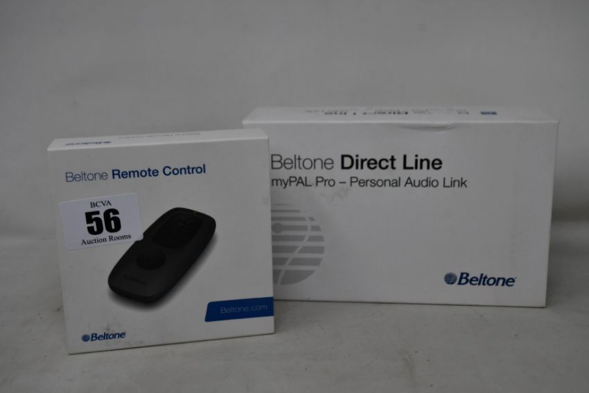 A Beltone remote control (EAN: 5708296184279) and a Beltone myPAL Pro personal audio link (EAN:5708296056606).