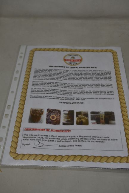 Encased in original wicker, this stone jar of Genuine Royal Navy (Pussers) Rum was part of Naval history, and a British Naval tradition dating back to 1655, when sailors were afforded a daily ration (known as a tot) of rum. This ceased on 31st July 1970, so this is perfect opportunity to own a true part of Naval Heritage