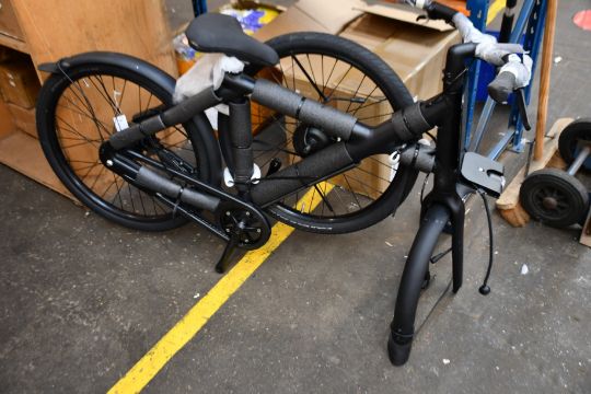 An incomplete VanMoof X3 Electric Bike (NOTE: Viewing is recommended, items has no pedals and has some damage).