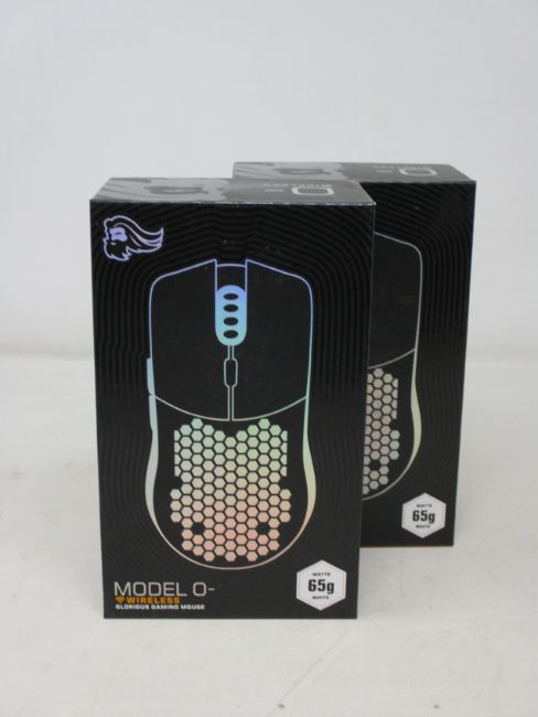 Two boxed as new Glorious Model O-Wireless Gaming Mice (Matte white).