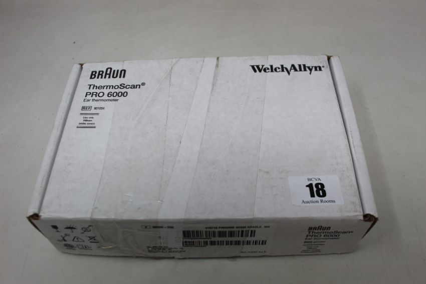 A boxed as new Braun welch allyn ThermoScan PRO 6000 with cradle.