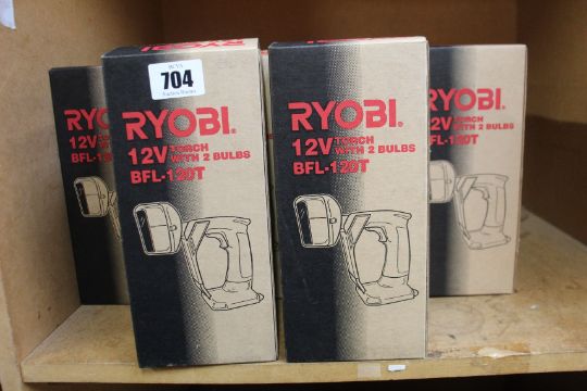 Ten boxed as new Ryobi 12v torchES with 2 bulbs (Bfl-120t).