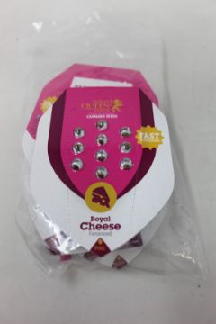 Ten packs of Royal Queen Seeds Premium Feminized Royal Cheese Cannabis seeds (Ten seeds per pack) for ornamental use only (Over 18s only).