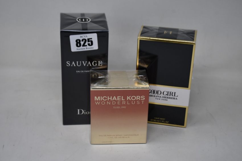 A Dior Sauvage eau de parfum (200ml), Michael Kors Wonderlust Sublime eau de parfum (50ml) and Carolina Herrera Good Girl hair mist (30ml).