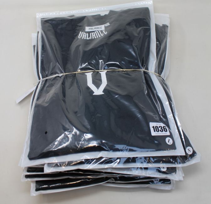 Ten as new Valiance T-shirts in black (Assorted sizes- RRP £25 each).