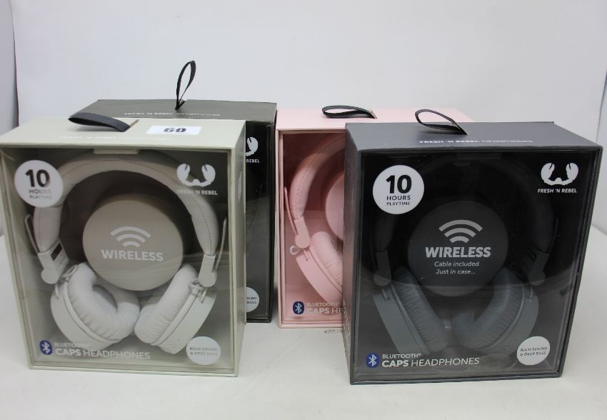 Four boxed fresh and rebel caps Bluetooth headphones.