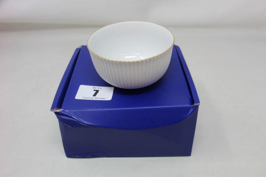Three Augarten Wein handmade gold rim and ribbed decoration small 10cm fruit bowls.