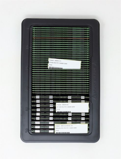 A quantity of pre-owned memory modules to include; 32 x HP 500205-171 8GB 2Rx4 PC3-10600 DDR3, 6 x HP 500203-061 4GB 2Rx4 PC3-10600R DDR3, 3 x Hynix HMT151R7BFR4C-H9 4GB PC3-10600r DDR3 (All untested, sold as seen).