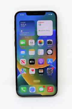 A pre-owned iPhone 12 Pro Max (Global/A2411) 128GB in Silver (iCloud account clear) (Checkmend report ID: CM18568098-CF20A).