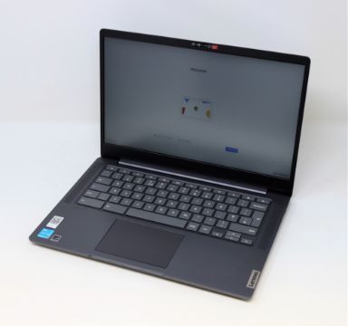 A boxed as new Lenovo IdeaPad 5 Chromebook 14" FHD Laptop in Storm Grey with Intel 7505 2.0GHz CPU, 4GB RAM, 128GB SSD running Chrome OS (M/N: 82M8000BUK S/N: PF2YRDHW) (Power adaptor & UK cable included. Packaging opened to inspect contents. Damage to box).