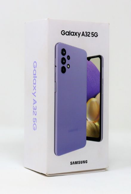 An as new Samsung Galaxy A32 5G (SM-A326B/DS) 64GB in Awesome Violet (Box opened, some damage to box. UK plug, USB-C cable included. Checkmend report ID: CM18555073-1FD8A).