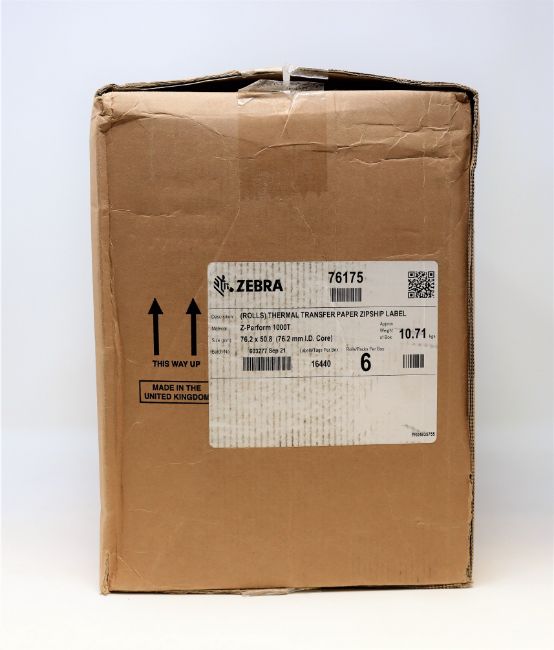 Two boxes of six Zebra Direct Thermal Transfer Zipship Z-Perform 1000T 50.8mm x 25.4mm Labels.