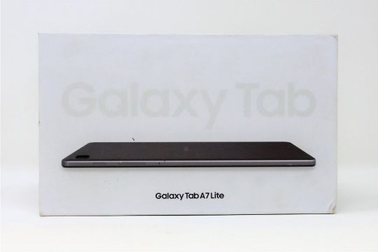 A boxed as new Samsung Galaxy Tab A7 Lite (SM-T220) 8.7" 32GB Wi-Fi Tablet in Silver (Box sealed. Cosmetic damage to box).