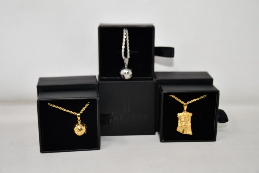 Fifteen items of assorted Haraves jewellery to include 5x silver and 5x gold Globes and 5x Jesus.