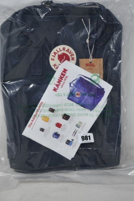 Three as new Fjall Raven Kanken backpacks in light grey.