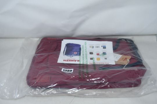 Five as new Fjall Raven Kanken backpacks in black/red.