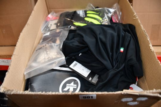 Ten items of assorted as new cycling clothing and accessories to include Altura, Gore, Stolen Goat, Endura, Foska, Castelli and Assos.