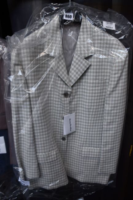 An as new Acne Studios suit jacket/blazer in green/grey check (Size 36).