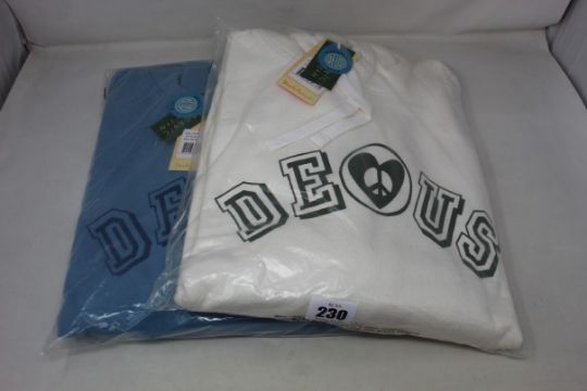 Two men's as new Deus Ex Machina Active Listening Hoodies in Blue Heaven and Vintage White (M).