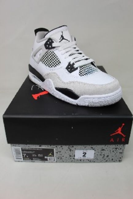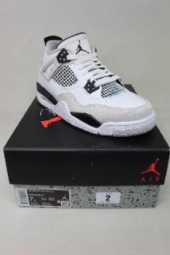 A pair of as new Nike Air Jordan 4 Retro (GS) in White/Black-Neutral Grey (Size UK 6).