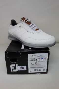 A pair of as new FJ Stratos 50012K Golf Shoes in White (Size UK 10).