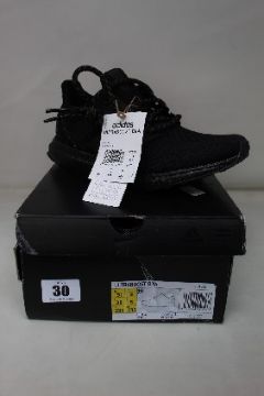 A pair of as new Adidas Ultraboost DNA Pharrell Williams x Parley Black Future (Size UK 5) (Box has some damage).
