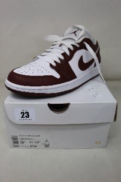 A pair of women's as new Nike Air Jordan 1 Low in White/Bronze Eclipse-White (Size UK 7).