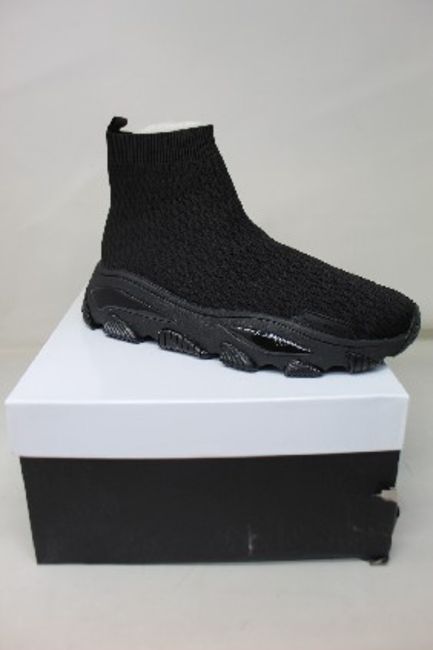 A pair of women's boxed as new Kurt Geiger London Lettie Knit Sock Drench Trainers in black (EU 40).