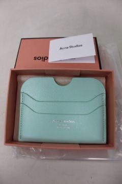 Three boxed as new Acne Studios Leather Card Holders in Pastel Green.