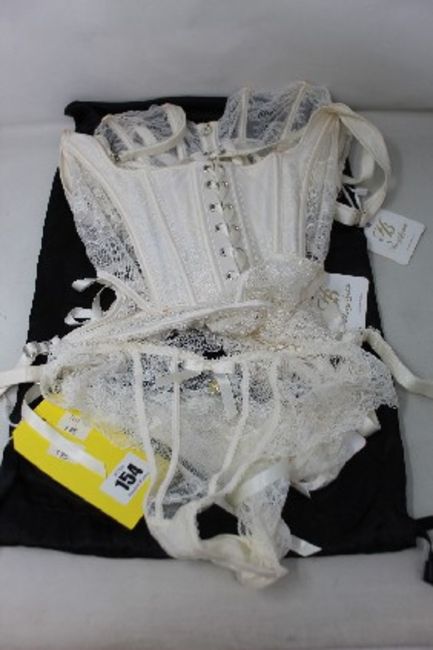 Four as new Honey Birdette Products to include 1x Rebecca Corset in Ivory (Size M), 1x Rebecca Bra in Ivory (34DD), 1x Rebecca Brief in Ivory (Size M) and 1x Rebecca Waspie in Ivory (Size M).